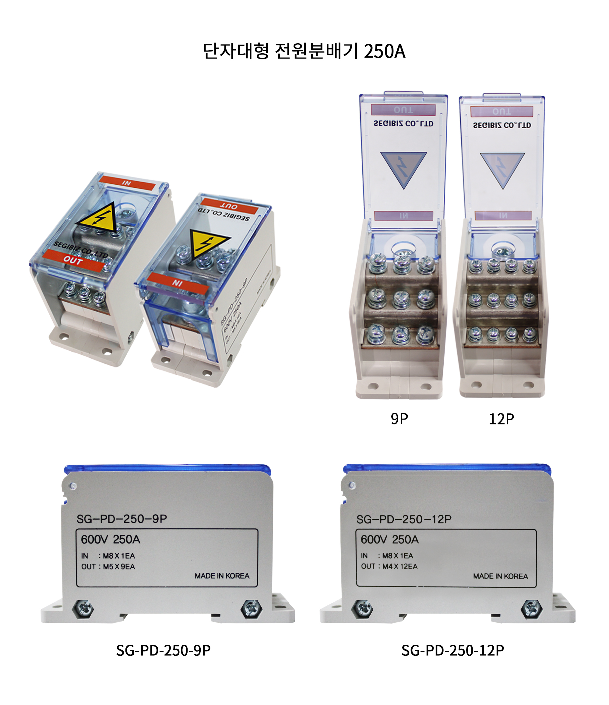 The terminal-type power distributor is small in size, economical, and improves work efficiency so that it can be used conveniently. It can be used by directly loading it into the main body of the product in a narrow space or by mounting it on a standard 35mm chanel, and consists of one input terminal and four to eight output terminals, respectively. It is resistant to impact and heat using heat-resistant materials, and the booth bar is plated with 99.9% copper and tin, which has higher conductivity than brass, and the power inlet protection cover allows safer and more convenient use.